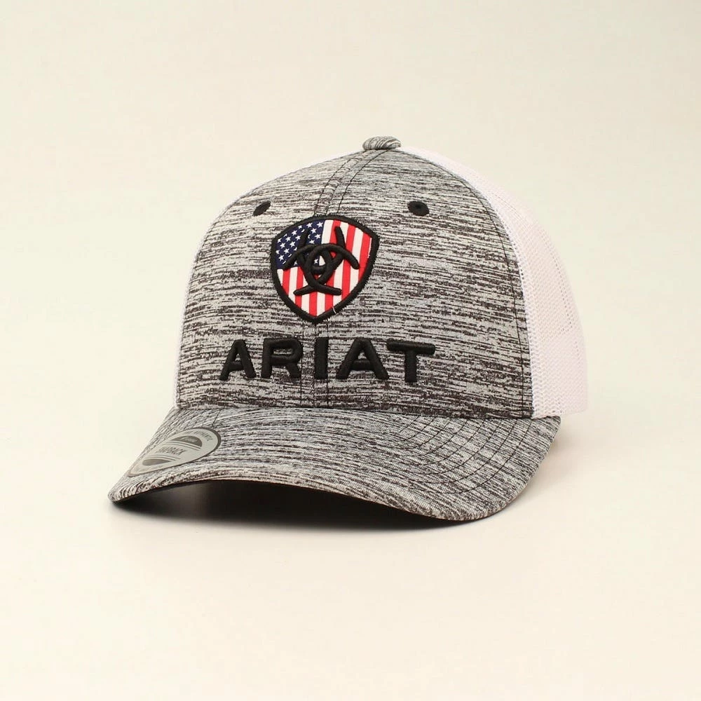 Ariat Boys Heather Grey Cap With Red, White & Blue Ariat Shield Embroidery Logo A300008706 – Accessories