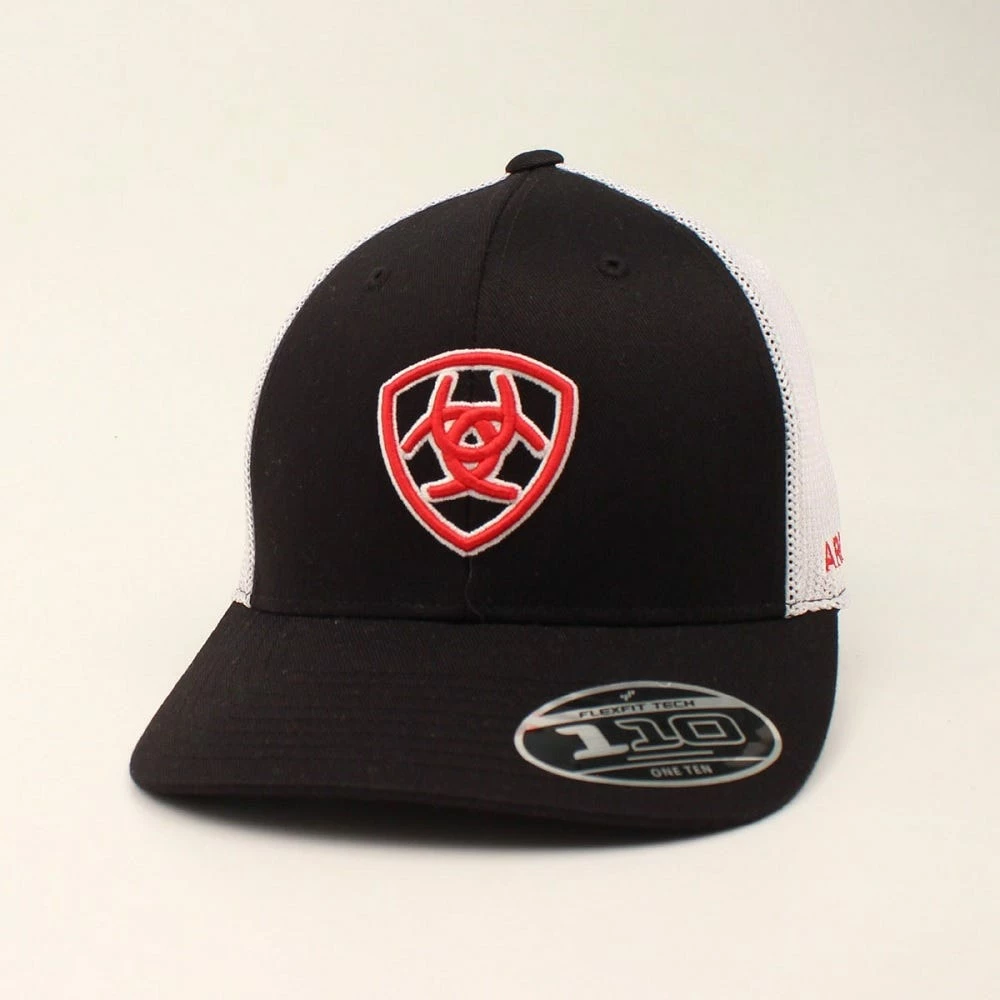 Ariat Mens Black Flex Fit 110 Cap With Red Embroidery Ariat Shield Logo A30007901 – Hats & Caps