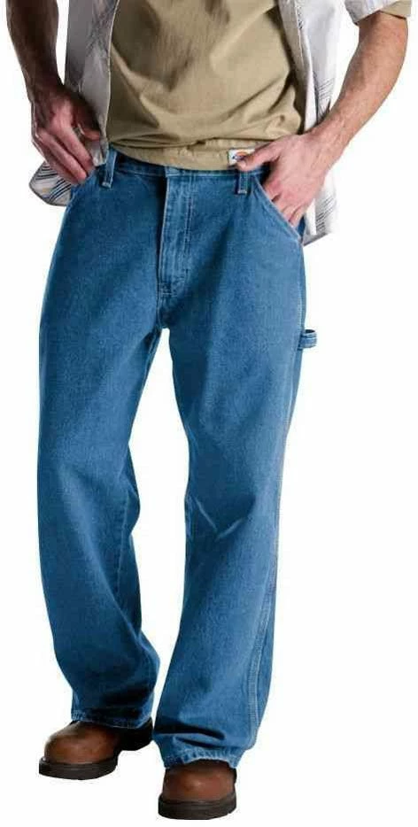 The durable Dickies Men’s Relaxed Fit Carpenter Jean 1993 has a casual waistband, a generous fit through the seat and thigh with slightly tapered leg openings. The rugged, heavyweight 14 oz.. Denim, 100% Cotton workhorse denim fabric is woven for durability, and the reinforced triple stitched seams will prevent blowouts in tough working situations. This jean will work just as hard as you do with a hammer loop, dual tool pocket and rivets at all stress points. This jean is built to last. Dickies, Quality Workwear since 1922.