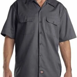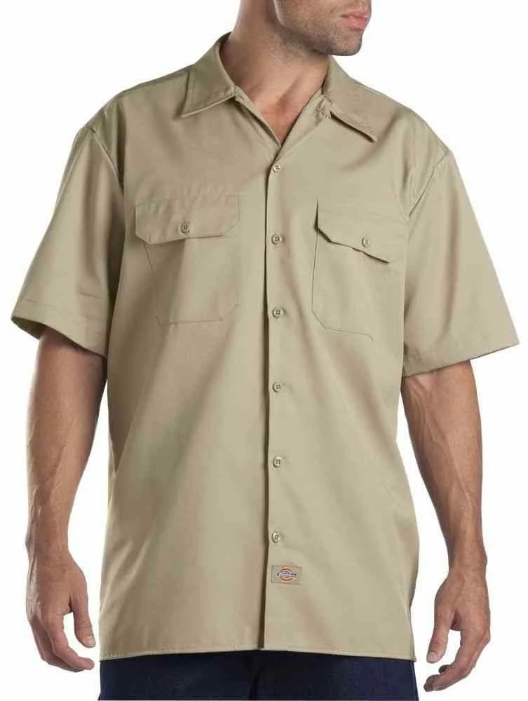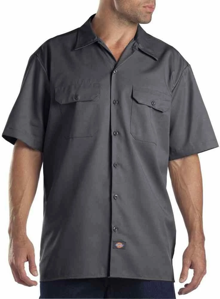The classic Dickies Men’s Short Sleeve Work Shirt 1574 has a generous cut through the shoulders and chest to give you plenty of room for movement. It’s made with a durable poly/cotton twill fabric that will help you stay clean with a stain release finish, and a moisture wicking treatment that will help keep you dry. For added utility, two chest flap pockets provide storage for anything you’ll need on the job. This shirt is designed to look good, and built to last. Dickies, Quality Workwear since 1922.