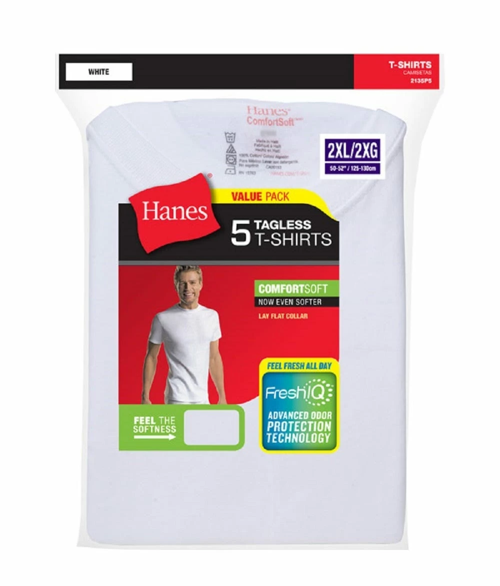 FreshIQ advanced odor protection technology attacks the odor-causing bacteria in your clothing that causes your underwear and socks to smell — so now you can feel fresh all day. ComfortSoft Fabric feels great against your skin. Designed with preshrunk cotton for a great fit. Tag-Free for Itch-Free Comfort. Roomy armholes allow for freedom of movement. 100% Preshrunk Cotton. Lay Flat Collar is designed to keep its shape. Generous length helps hem stay tucked.