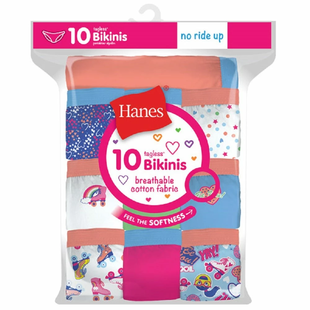 Hanes Girl’s No Ride Up Bikinis 10 Pack – GP10BK