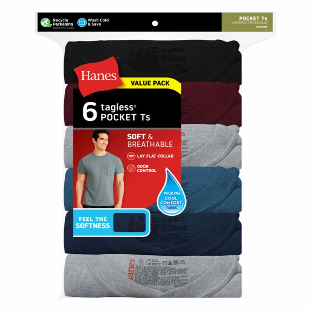 Hanes Men’s Soft And Breathable Pocket Tee Assorted 6-Pack – 217DP6