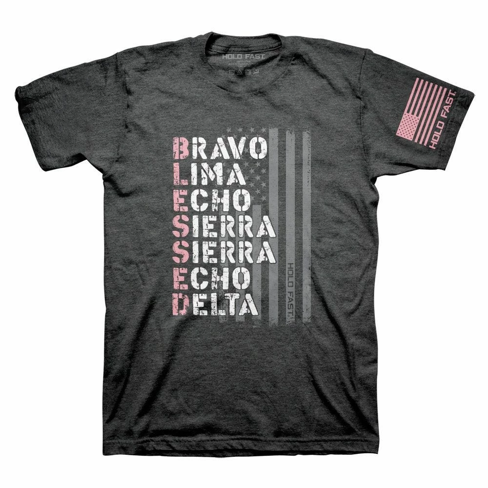 Give a shout-out to the Lord and the United States Armed Forces with this clever “BLESSED” T-Shirt in Charcoal Heather by HOLD FAST®. Everywhere you go, every situation you encounter, offers an opportunity for God to bless you. Whatever language you say it in, let others know that relying on God makes all the difference in your life.