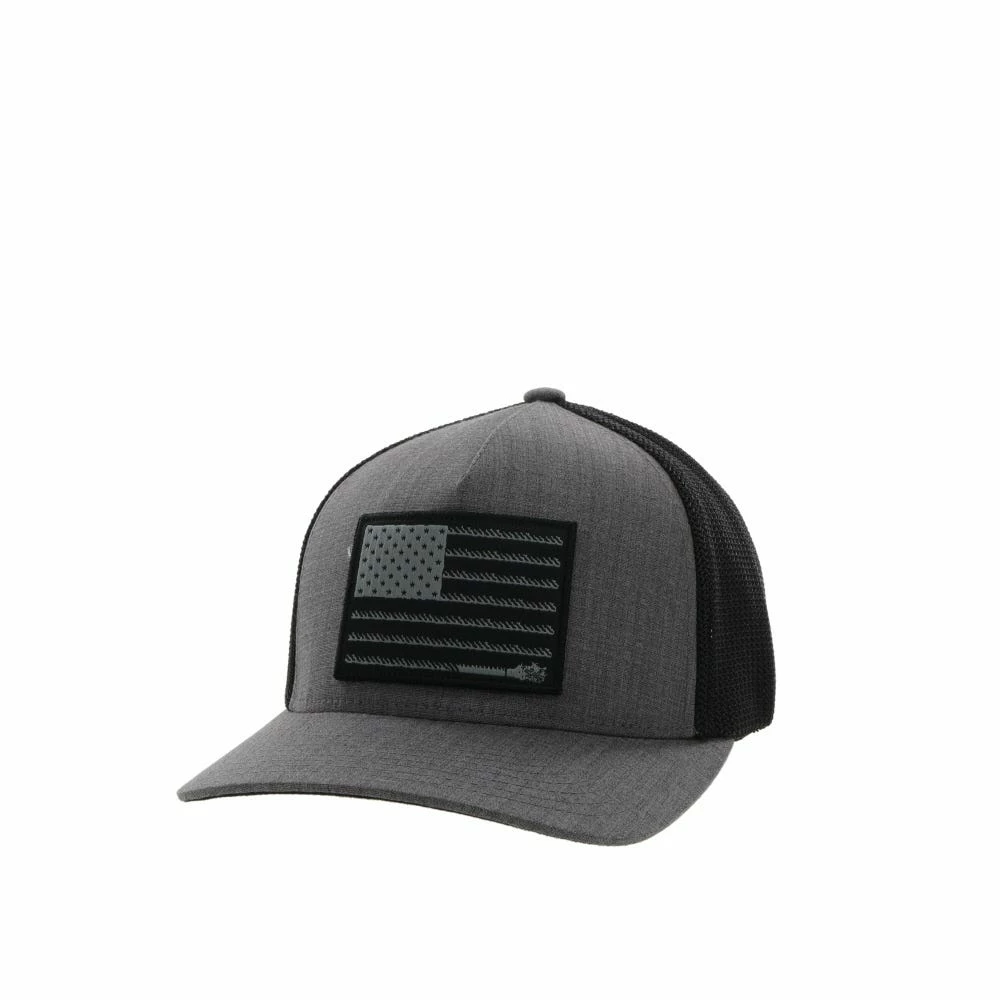 Hooey Men’s Liberty Roper Grey/Black 5-Panel Flexfit Cap, L/XL – 2210GYBK-02 – Hats
