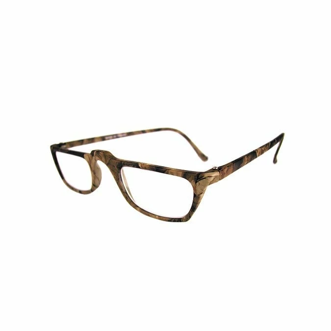 High quality camo frame reader with spring hinge temples and aspheric lens.