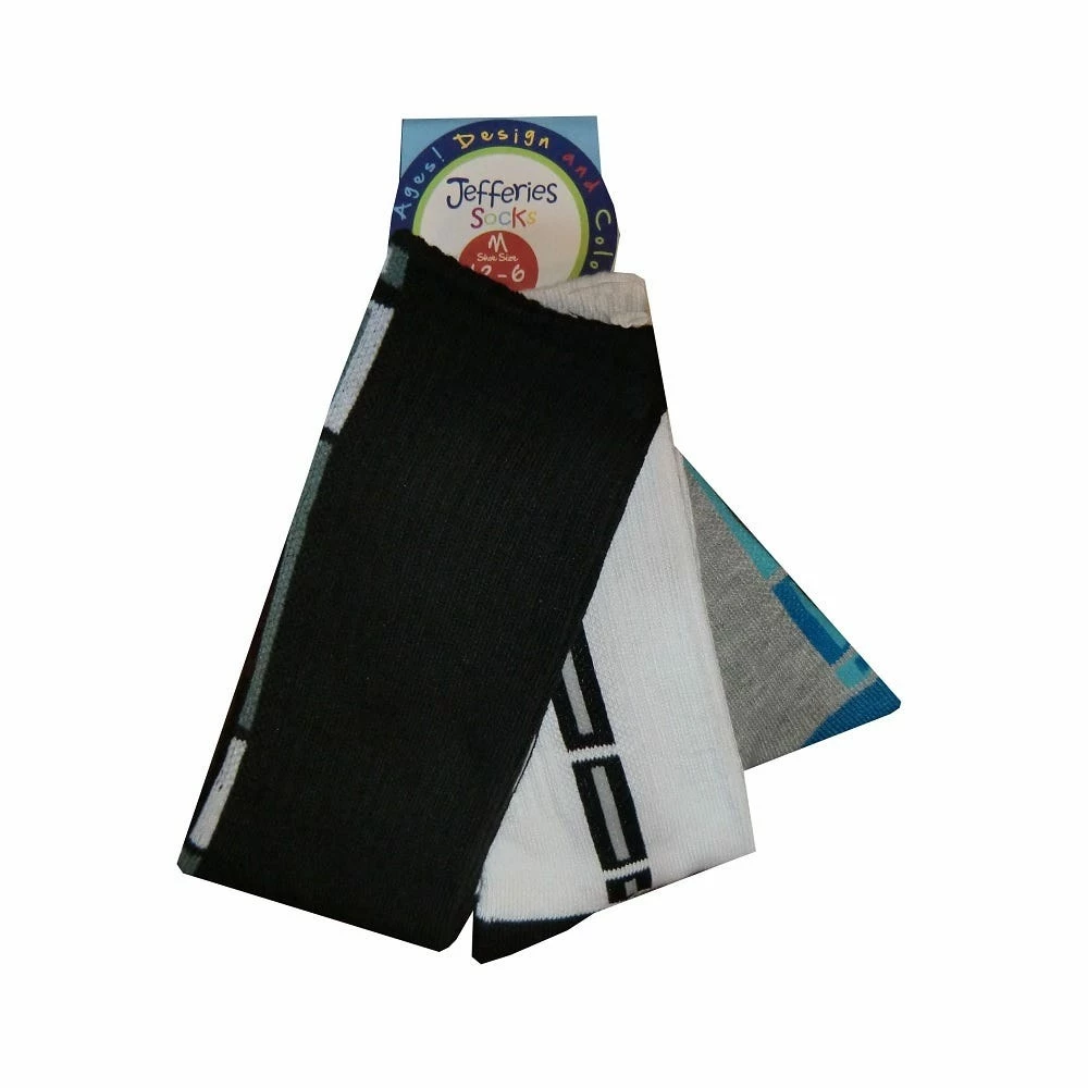 Jefferies Boy’s Tech Crew Sock 3 Pack Medium Black – 1179-M