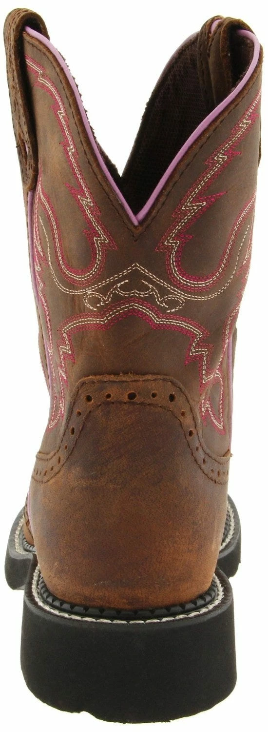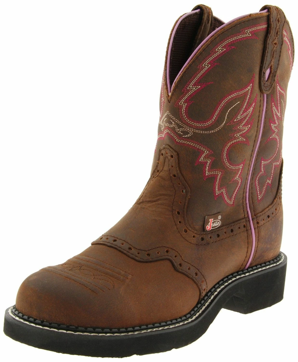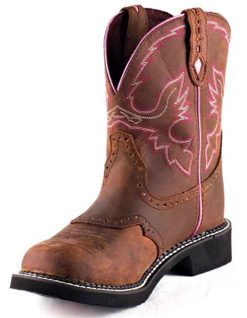 Ladies, check out the Justin Women’s Aged Bark Gypsy Western Boot L9903. You’ll be lookin’ good while feeling great in these Gypsy’s. Pink diamond cut pull strap helps you slide the 8″ upper on with ease. Now that you’ve got them on, you won’t want to take them off because of the patented J-Flex Flexible Comfort System with removable orthotic insert. This is leather-covered cushioned insole and triple density insole board. It will feel as if we have already broken them in for you. Feel free to love your boots, we do!