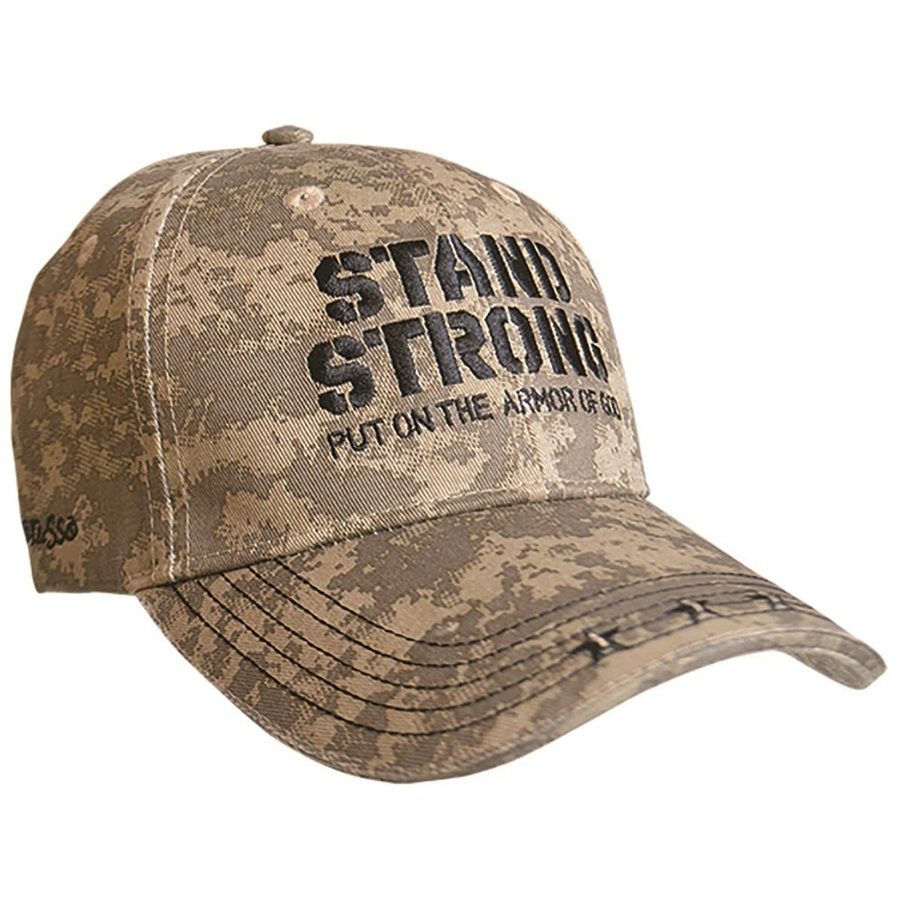Take courage and face any circumstance with bold faith in this “Stand Strong” Cap in Desert Camo. A cool camo print with a powerful message of God’s faithfulness will remind you, and everyone you meet, that God’s got your back no matter what you’re up against.