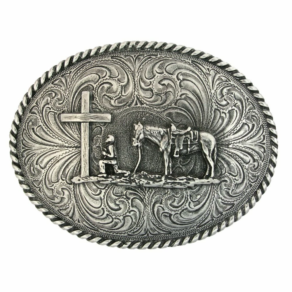 Montana Silversmiths Montana Silversmith Antique Silver Christian Cowboy Buckle 61304 – Belt Buckles