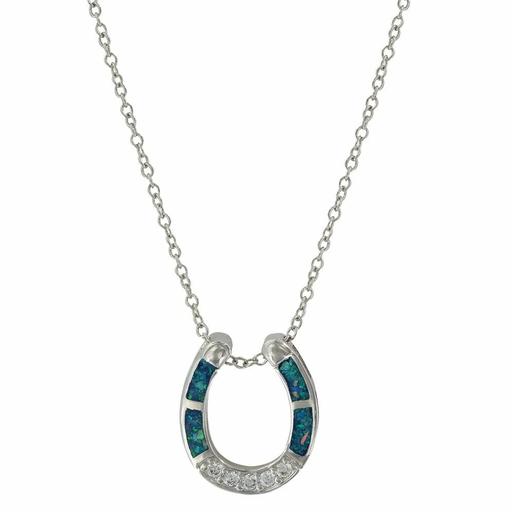 Montana Silversmiths Montana Silversmith Cubic Zirconia & Opal Horseshoe Inlay Necklace NC3859 – Jewelry
