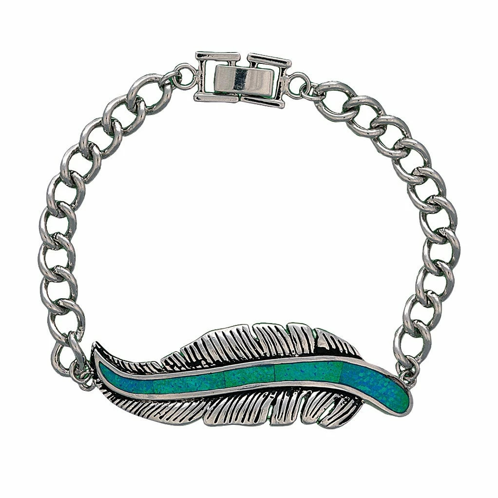 Montana Silversmiths Montana Silversmith Silver Opal Feather Chain Link Bracelet BC1320 – Jewelry