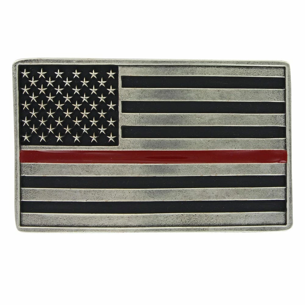 Show your support of the firefighters who protect life and property everyday by wearing this American flag buckle with a thin red line. The Thin Red Line represents the continual courage and patience of firefighters as they place their lives on the line to protect life and property. From those that continue to protect to those that have been injured or killed in the line of duty the display of the thin red line shows respect for the for all firefighters. Standard 1.5 inch belt swivel.