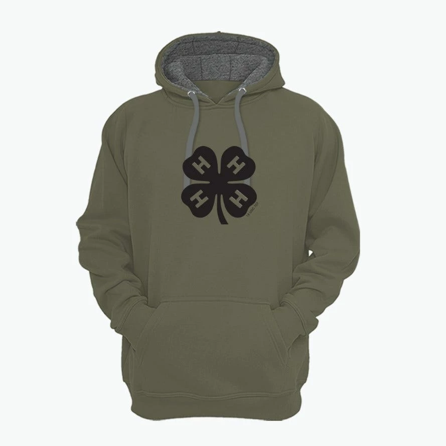 - 4H Men’s Long sleeve fleece hoodie with graphite heather contrasting hood liner and twill draw cords