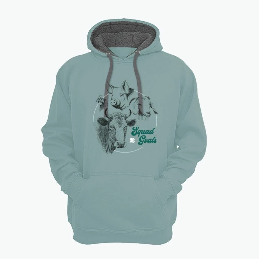 - 4H Ladie’s Long sleeve fleece hoodie with graphite heather contrasting hood liner and twill draw cords