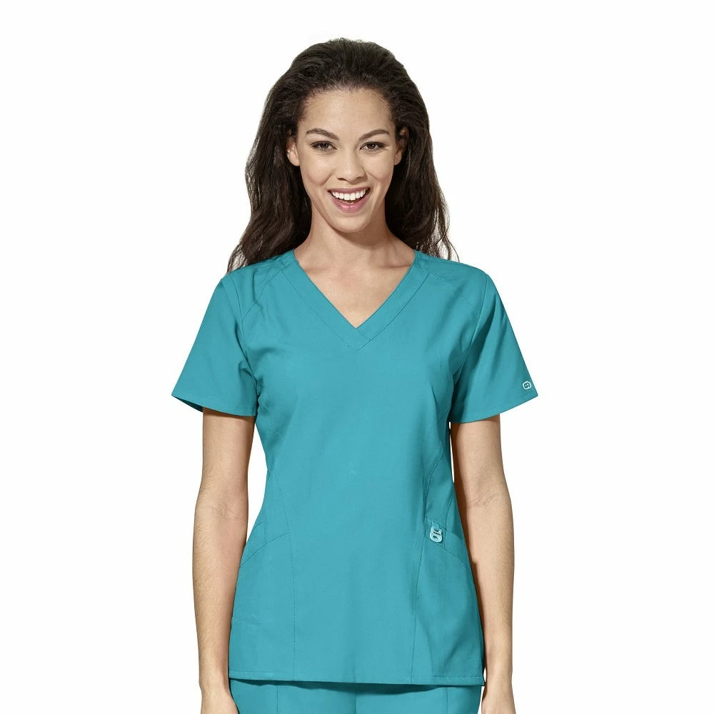 WonderWink Women’s Stylized V-neck Top Scrub Teal Blue – 6155TEAL