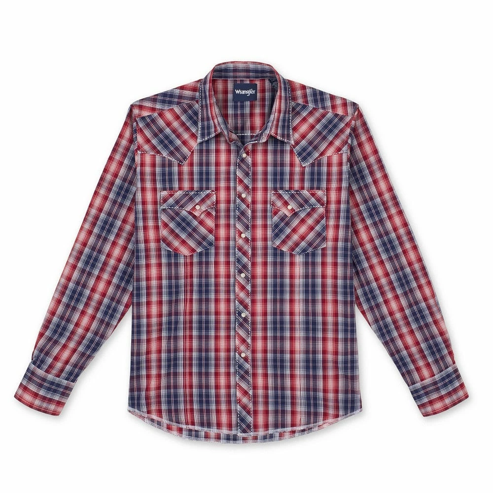 Wrangler Men’s Western Fashion Snap Long Sleeve Shirt Red – MVG295R